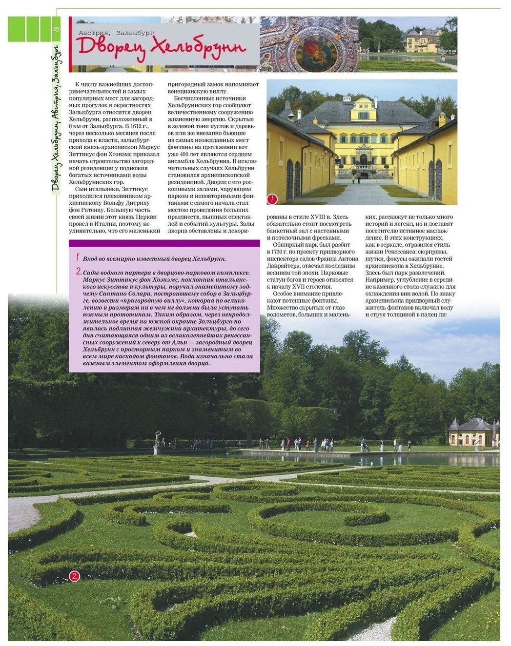 В настоящем издании содержится информация не только о дворцах, комплексах и ансамблях, которые у всех на слуху, – Букингемский дворец, дворцовый комплекс Лувр, Зимний дворец, Белый дом, дворцово-парковый ансамбль Сан-Суси, но также и о мало известных, но не менее прекрасных и величественных – Кносский дворец, дворец Махараджи, палаццо Пубблико, дворцово-парковый ансамбль Лазенки, Бахчисарайский дворец, дворец усадьбы Кусково, дворцовый ансамбль Кацура и пр. Прочитав книгу, вы узнаете, когда, кем и по чьему заказу были возведены эти жемчужины архитектуры и какие знаменательные события здесь происходили. Кроме того, эта «энциклопедия» дворцов поведает вам о малоизвестных, но очень интересных фактах: за какие заслуги герцог Мальборо получил в дар от королевы Анны дворец Бленхейм, где и когда проходила выставка предметов с затонувшего «Титаника», в каком испанском дворце витражи и изразцы выполнены по рисункам великого Гауди, сколько людей трудилось над созданием грандиозного архитектурного ансамбля в Поднебесной – дворца Гугун. Издание прекрасно иллюстрировано и станет настоящим подарком для путешественника.