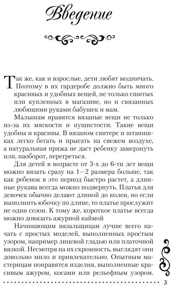 В книге представлены модели вязаной одежды для детей 3–6 лет. Их под силу связать даже начинающим мастерицам. Каждое изделие подробно описано и снабжено наглядным рисунком. Самостоятельно придется выбрать только цвет пряжи. Творческих вам успехов! Радуйте своих близких теплыми, яркими и оригинальными вещами!