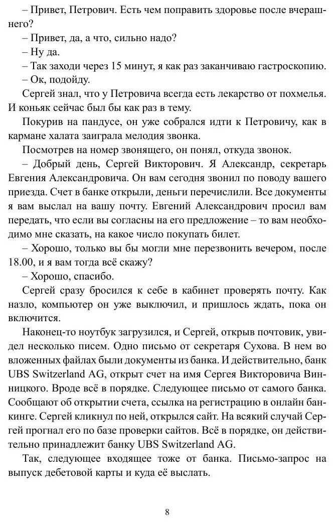 Прекрасная книга. Ведёт читателя за собой позволяет проникнуться сценарием почувствовать себя полноценным участником всей цепочки событий Тонко затрагивает между строк реальные факты жизненные события человека . Огромное спасибо писателю за прекрасно изложенную книгу, с нетерпением буду ждать предложения.