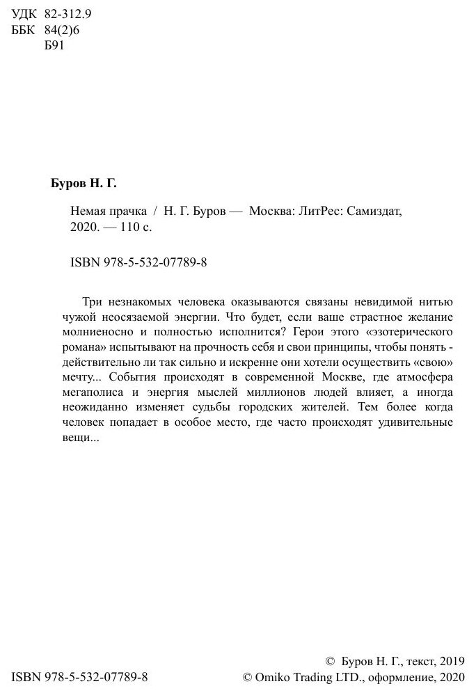 Книга: Немая прачка (Николай Геннадьевич Буров); Автор, 2019