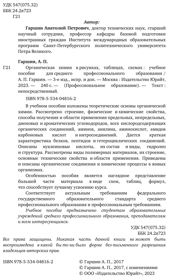 На сегодняшний день товар «Книга: Органическая химия в рисунках таблицах схемах 3-е изд. испр. и доп. Учебное пособие для СПО (Анатолий Петрович Гаршин); ЮРАЙТ, 2017» можно купить с кешбеком в 1 магазине: ЛитРес