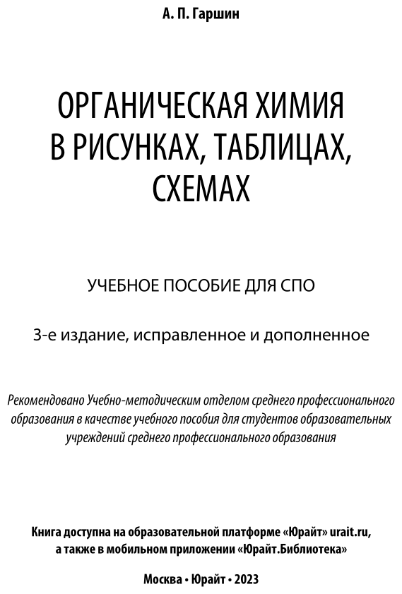 Органическая химия в рисунках таблицах схемах 3-е изд. испр. и доп. Учебное пособие для СПО (Анатолий Петрович Гаршин); ЮРАЙТ, 2017