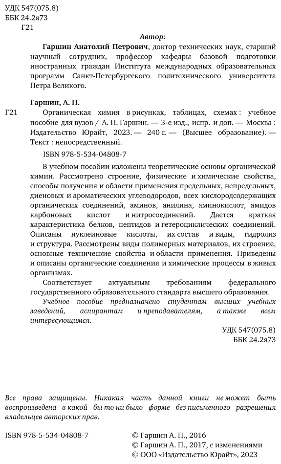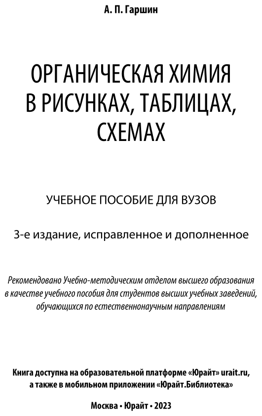 Органическая химия в рисунках таблицах схемах 3-е изд. испр. и доп. Учебное пособие для прикладного бакалавриата (Анатолий Петрович Гаршин); ЮРАЙТ, 2017