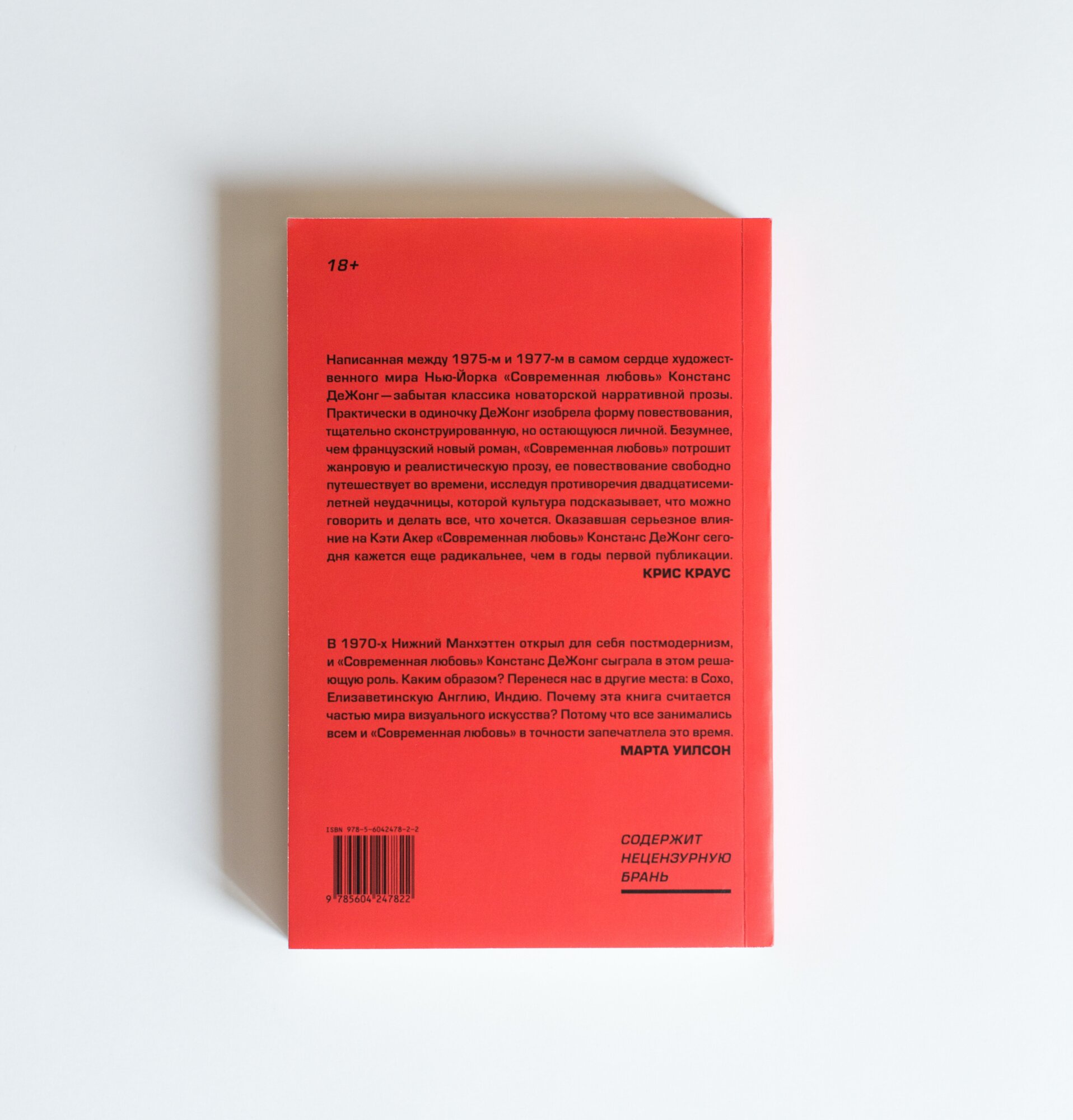 Роман Констанс ДеЖонг «Современная любовь» — постмодернистская классика, образец новаторской прозы своего времени. Это детективная история и научная фантастика. Это история изгнания сефардских евреев из Испании. Это любовная история, рассказанная из сердца нижнего Ист-Сайда. Это история Шарлотты, Родриго и Фифи Кордей. Это форма, разъедающая время, голос и жанр, тщательно сконструированная и одновременно личная. ДеЖонг, важная фигура нью-йоркской медиа-арт-сцены 70–80-х годов, отправляла «Современную любовь» частями по почте, издала ее в форме книги и превратила в часовую радио-пьесу, музыку для которой написал Филип Гласс.