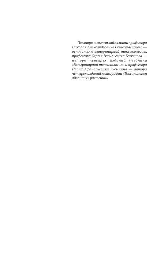 Предлагаемый учебник содержит материалы по общей и частной ветеринарной токсикологии. Представлена характеристика токсических веществ, их воздействия на организмы и методов диагностики, а также подробные сведения о различных видах токсикозов, возникающих у домашних животных: химических и кормовых, фитотоксикозах и микотоксикозах, поражениях ядами животного происхождения и отравляющими веществами, а также пилохлорированными бифенилами и хлордиоксинами. Приведены методы диагностирования, лечения и профилактики отравлений, содержатся рекомендации по проведению ветеринарно-санитарной экспертизы.