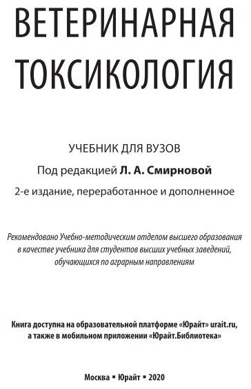 Ветеринарная токсикология 2-е изд. пер. и доп. Учебник для вузов (Жуленко Василий Николаевич; Таланов Герман Александрович; Цвирко Иосиф Павлович; Ананьев Лев Юрьевич; Смирнова Людмила Алексеевна); ЮРАЙТ, 2022