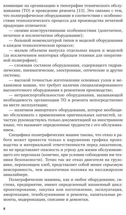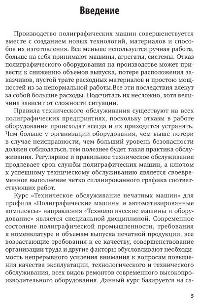 Курс «Техническое обслуживание печатных машин» является специальной дисциплиной и базируется на самых различных отраслях знаний и научных выводах физики, химии, инженерных дисциплин, связан с технологией полиграфического производства и полиграфического машиностроения, эргономикой, основами проектирования полиграфического оборудования. Учебное пособие содержит теоретическую и практическую информацию о техническом обслуживании механизмов листовых и рулонных офсетных печатных машин. Соответствует актуальным требованиям Федерального государственного образовательного стандарта высшего образования. Для студентов, обучающихся по направлениям подготовки «Технологические машины и оборудование» по профилю «Полиграфические машины и автоматизированные комплексы». Может оказаться полезным печатникам, инженерам и начальникам производств.