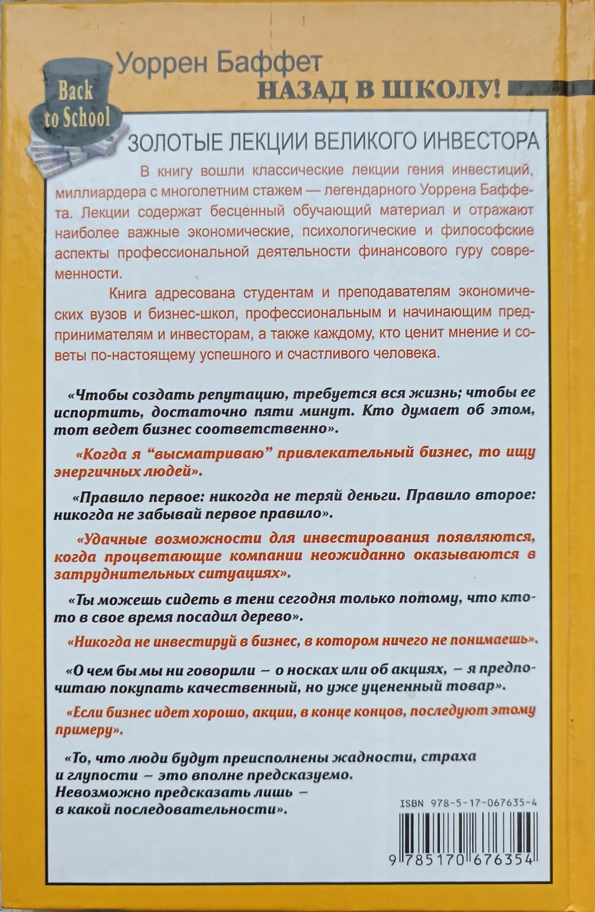 Назад в школу! Бесценные уроки великого бизнесмена и инвестора (Уоррен Баффетт); Издательство АСТ, 2010