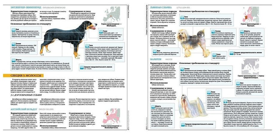 Собака и человек сосуществуют уже около 12 тысяч лет, за которые это умное животное стало для людей не только верным другом, но и надежным помощником. Происходило это постепенно. Домашняя собака унаследовала от предков весьма гибкий генетический потенциал, а человек, умело используя это, вывел множество пород, которые различаются не только по размеру и назначению, но и по другим параметрам. В настоящем издании породы собак представлены по группам в соответствии с классификацией, разработанной Международной кинологической федерацией. В начале каждой группы дана общая характеристика, затем следует описание соответствующей породы, приведены советы по содержанию и уходу за этими удивительными животными. Подробнейшая физическая характеристика каждой породы, сопровождающаяся соответствующей иллюстрацией, поможет читателю представить любую породу собак – как милых домашних компаньонов, так и незаменимых помощников человека на охоте, на работе и даже на войне.