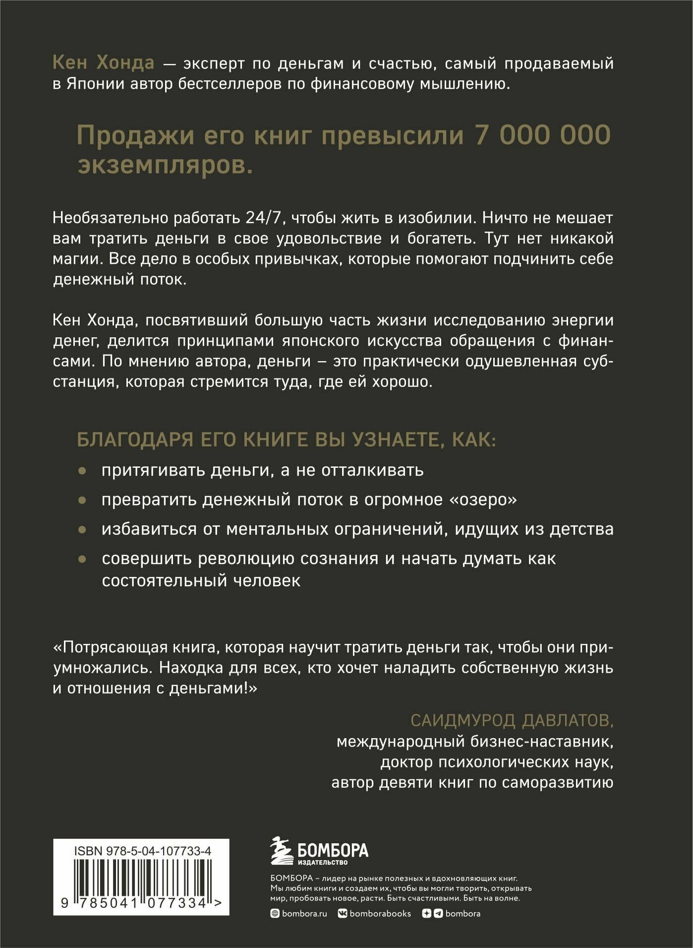 Кен Хонда, посвятивший большую часть жизни исследованию энергии денег, делится принципами японского искусства обращения с финансами. По мнению автора, деньги - это практически одушевленная субстанция, которая стремится туда, где ей хорошо.
