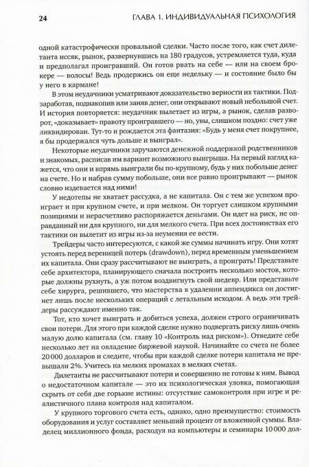 Автор этого международного бестселлера, д-р Александр Элдер, - профессиональный биржевик и эксперт по техническому анализу. Он учит, что успешная биржевая игра зависит от трех факторов: психологии, методов и контроля над риском. В первой части этой книги д-р Элдер показывает, что ключи к победе - в вашей психологии. Он учит, как стать дисциплинированным игроком и избежать эмоциональных ловушек на бирже. Затем Элдер объясняет, как найти выгодные сделки, пользуясь графиками, компьютерными индикаторами и другими инструментами анализа биржи. Вы увидите, как связать различные методы анализа в эффективную систему биржевой игры. И наконец, вам станет ясно, как управлять деньгами на своем биржевом счете. Правила для ограничения риска важны для биржевика, как запас воздуха - для аквалангиста. Новое, расширенное издание включает в себя задачник, созданный д-ром Элдером специально для тех, кто учится биржевому делу по его книге. Каждый из более 200 вопросов и ответов привязан к определенной главе книги. Задачник включает в себя 10 тестов. Раскрыв эту книгу,… вы сделали первый шаг к познанию новых методов игры на валютных, фондовых, фьючерсных и других рынках. Вам предстоит узнать, "как играть и выигрывать на бирже".