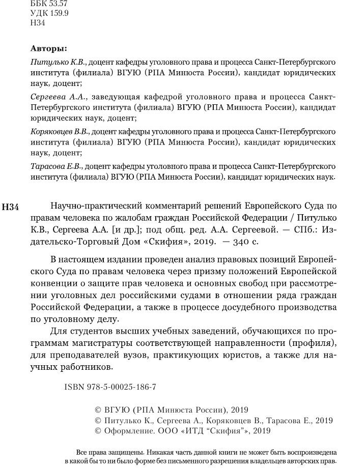Научно-практический комментарий решений Европейского Суда по правам человека по жалобам граждан Российской Федерации (Вячеслав Васильевич Коряковцев); Издательско-Торговый Дом "СКИФИЯ", 2019