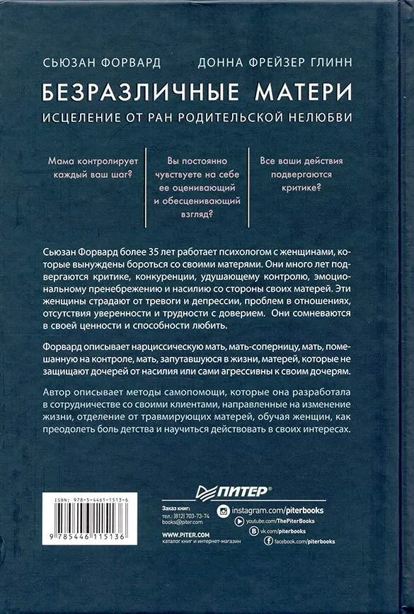 Безразличные матери. Исцеление от ран родительской нелюбви (Сьюзан Форвард); Питер (Айлиб), 2013