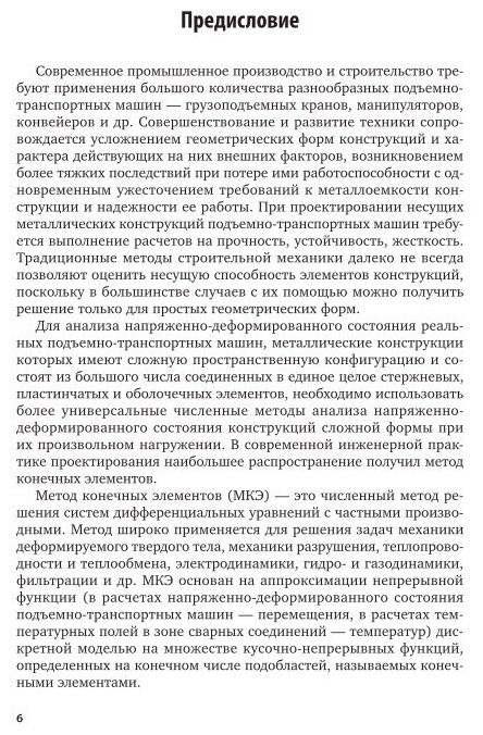 Рассматриваются вопросы, связанные с проведением расчетов напряженно-деформированного состояния металлических конструкций подъемно-транспортных машин и сварных соединений методом конечных элементов на основе универсального вычислительного комплекса NX Nastran и специализированного вычислительного комплекса МГТУ им. Н. Э. Баумана. Изложены основы метода конечных элементов применительно к расчету стержневых, тонкостенных и объемных конструкций. Приведены примеры расчета типовых конструкций подъемно-транспортной техники. Соответствует актуальным требованиям Федерального государственного образовательного стандарта высшего образования. Для аспирантов, студентов всех форм обучения и дополнительного образования технического профиля, специализирующихся в области проектирования и проведения расчетов на прочность наземных транспортно-технологических машин и оборудования.
