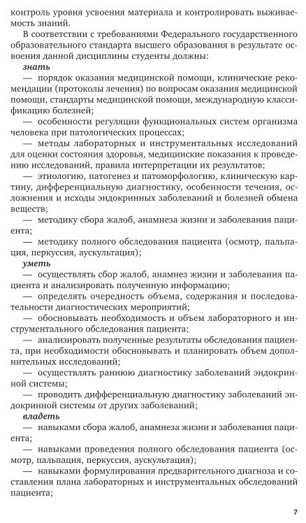 В учебнике представлены материалы по основным заболеваниям эндокринной системы и нарушениям обмена веществ, предусмотренные программой подготовки студентов медицинских вузов; изложены современные данные по этиологии, патогенезу, диагностике, клинической картине, дифференциальной диагностике, лечению и профилактике заболеваний. В приложении приводятся типовые тестовые задания, разработанные для итоговой аттестации выпускников лечебного, стоматологического факультетов. Соответствует актуальным требованиям Федерального государственного образовательного стандарта высшего образования. Учебник адресован студентам высших учебных заведений, обучающимся по медицинским направлениям, аспирантам, преподавателям, практикующим врачам.