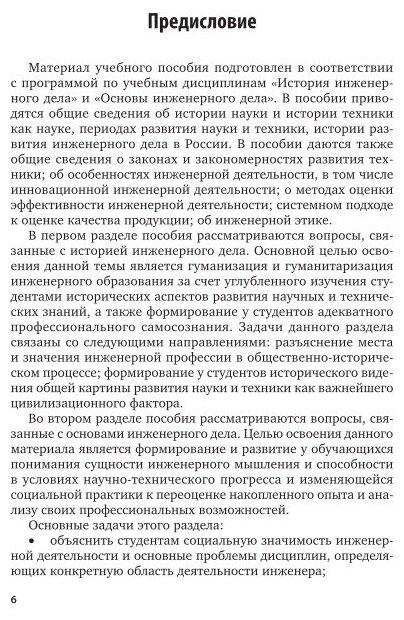 В первом разделе учебного пособия приведены сведения об основных этапах и периодах развития техники, истории технических изобретений, истории развития инженерного дела в России. Во втором разделе рассмотрены закономерности развития техники, особенности инновационной инженерной деятельности, основные вопросы инженерной этики. Соответствует актуальным требованиям Федерального государственного образовательного стандарта среднего профессионального образования и профессиональным требованиям. Для студентов учебных заведений среднего профессионального образования, обучающихся по инженерно-техническим направлениям, и специалистов, интересующихся вопросами, связанными с историей науки и техники и инженерным делом.