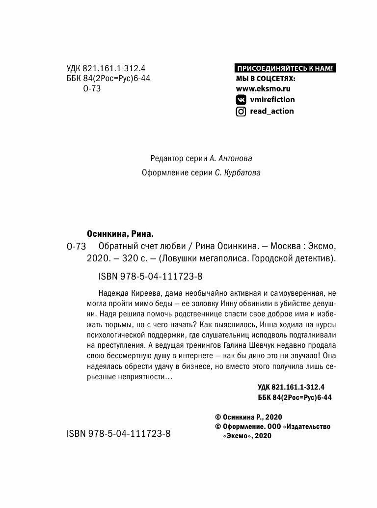Сервис сравнения цен СкидкаГИД предлагает сравнить цены на товар «Книга: Обратный счет любви (Рина Осинкина); Эксмо, Редакция 1, 2020»