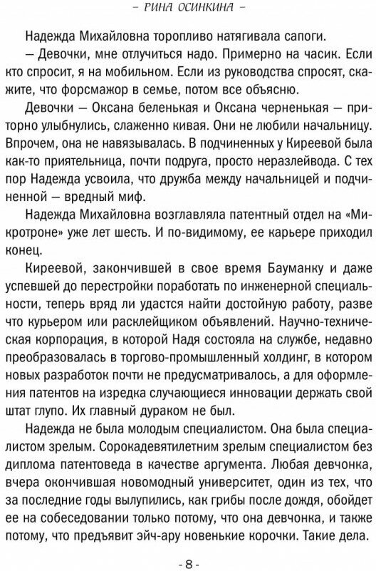 Читалось с большим интересом и ещё мне понравилось, что в новых книгах вскользь встречаются героини прошлых историй Рины Осинкиной. -