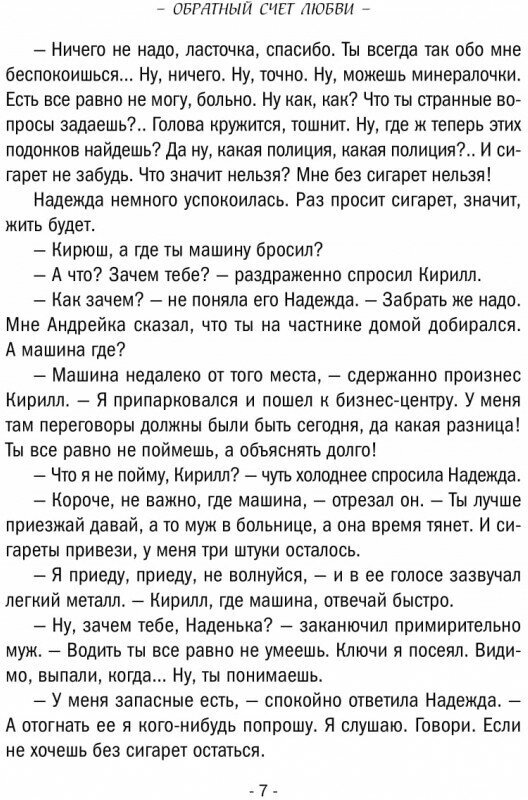 Остросюжетный роман Рины Осинкиной «Обратный счет любви» входит в авторский цикл «Ловушки мегаполиса». Надежда Михайловна Киреева, начальник патентного отдела корпорации «Микротрон», была твердо уверена, что женщина любого возраста обязана всегда следить за собой и не распускаться даже в самых сложных обстоятельствах. Сама она неукоснительно следовала этому правилу, даже когда для ее семьи настали сложные времена. Сын Надежды Михайловны Андрей и его подруга Даша, с которой они вместе работали в редакции журнала, становятся свидетелями убийства их коллеги Ксении: они застали какую-то странную старуху с ножом над телом убитой девушки. В момент убийства на Ксении была Дашино пальто с редакционным удостоверением и ее мобильным телефоном в кармане...