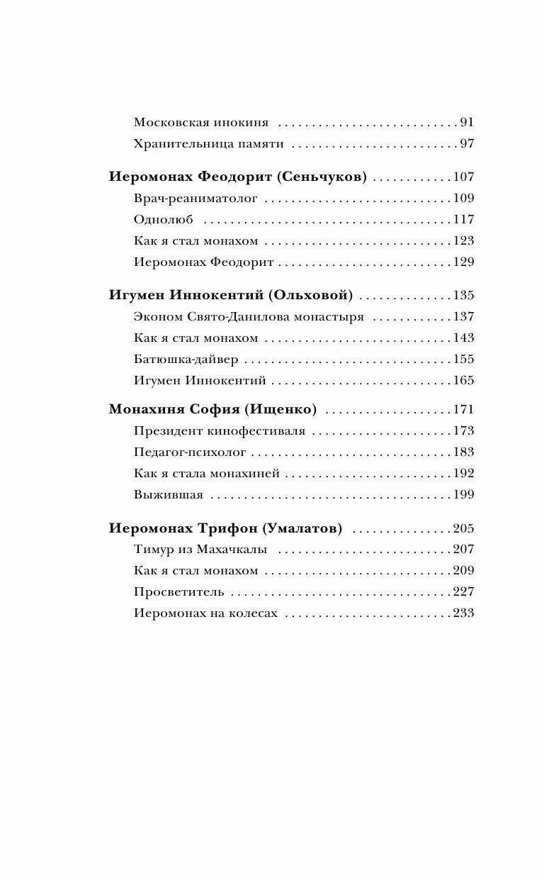 Бросить всё и уйти в монастырь. Кажется, сегодня сделать это труднее, чем когда бы то ни было. Почему же наши современники решаются на этот шаг? Какими путями приходят в монастырь? Как постриг меняет жизнь - внешнюю и внутреннюю? Книга составлена по мотивам цикла программ Юлии Варенцовой "Как я стал монахом" на телеканале "Спас". О своей новой жизни в иноческом обличии рассказывают: