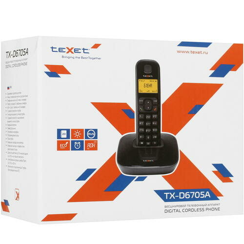 Радиотелефон DECT teXet предназначен для тех, кто ценит удобство и надежность. Несмотря на внешнюю простоту и доступную стоимость, обладает всем необходимым для современного радиотелефона функционалом. Благодаря дисплею с яркой оранжевой подсветкой пользоваться комфортно даже в плохо освещенном помещении. На экране четко отображается время, задания для будильника, статус связи между трубкой и базовым блоком, индикация заряда батареи и др.