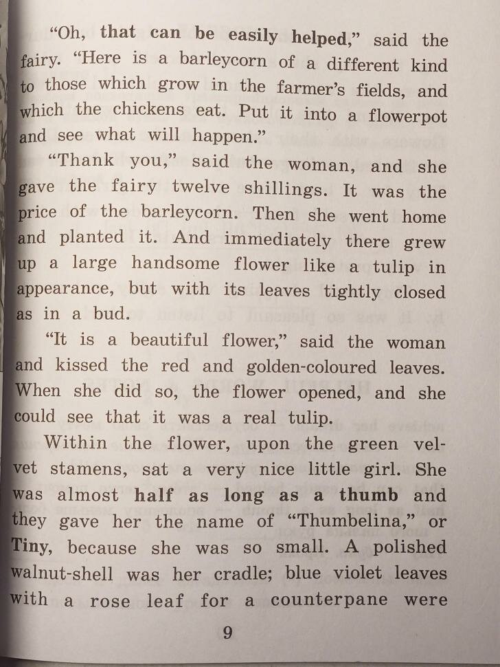 Преподаватель порекомендовал книги из серии «Английский клуб» для постепенного погружения в языковую среду. Выбор пал на «Дюймовочку», поскольку незамысловатый и всем знакомый сюжет упрощает ребёнку первое знакомство с объемным произведением на английском языке.