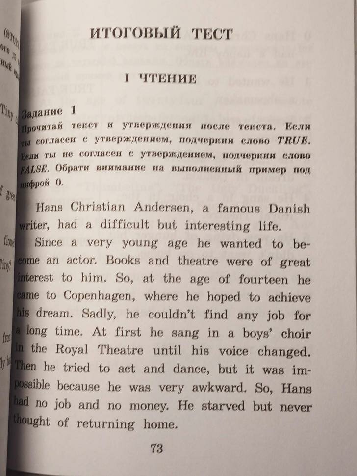 Книга представляет собой адаптацию сказки великого датского писателя Х.К. Андерсена "Дюймовочка" на английском языке. Это одна из лучших сказок знаменитого писателя, широко известная в нашей стране. Она сразу пришлась по душе не только детям, но и взрослым. В ней рассказывается о маленькой, красивой и доброй девочке, появившейся на свет из цветка. Данное пособие разработано в соответствии с новыми требованиями Федерального государственного образовательного стандарта (ФГОС). Оно поможет учащимся начальной школы подготовиться к обязательному для каждого ученика итоговому экзамену по английскому языку в новом формате, который вводится в текущем году. После каждой главы пособия следуют комментарий и перевод трудных слов и выражений, а также упражнения, которые учитывают новые требования итоговой аттестации. Они направлены не только на проверку понимания текста, но и на отработку лексики, грамматики, а также развитие умений чтения, аудирования, устной речи, письма. Упражнения имеют разные уровни сложности, что даёт возможность каждому ученику продемонстрировать свой уровень знаний и умений. В конце книги помещён словарь, а также тест в формате итогового экзамена за 4-й класс с ключами. Адаптация текста, предисловие, комментарий, упражнения, словарь Т.Е.Львовой. Пособие адресовано учащимся 3-4 классов образовательных учреждений, а также широкому кругу лиц, изучающих английский язык.