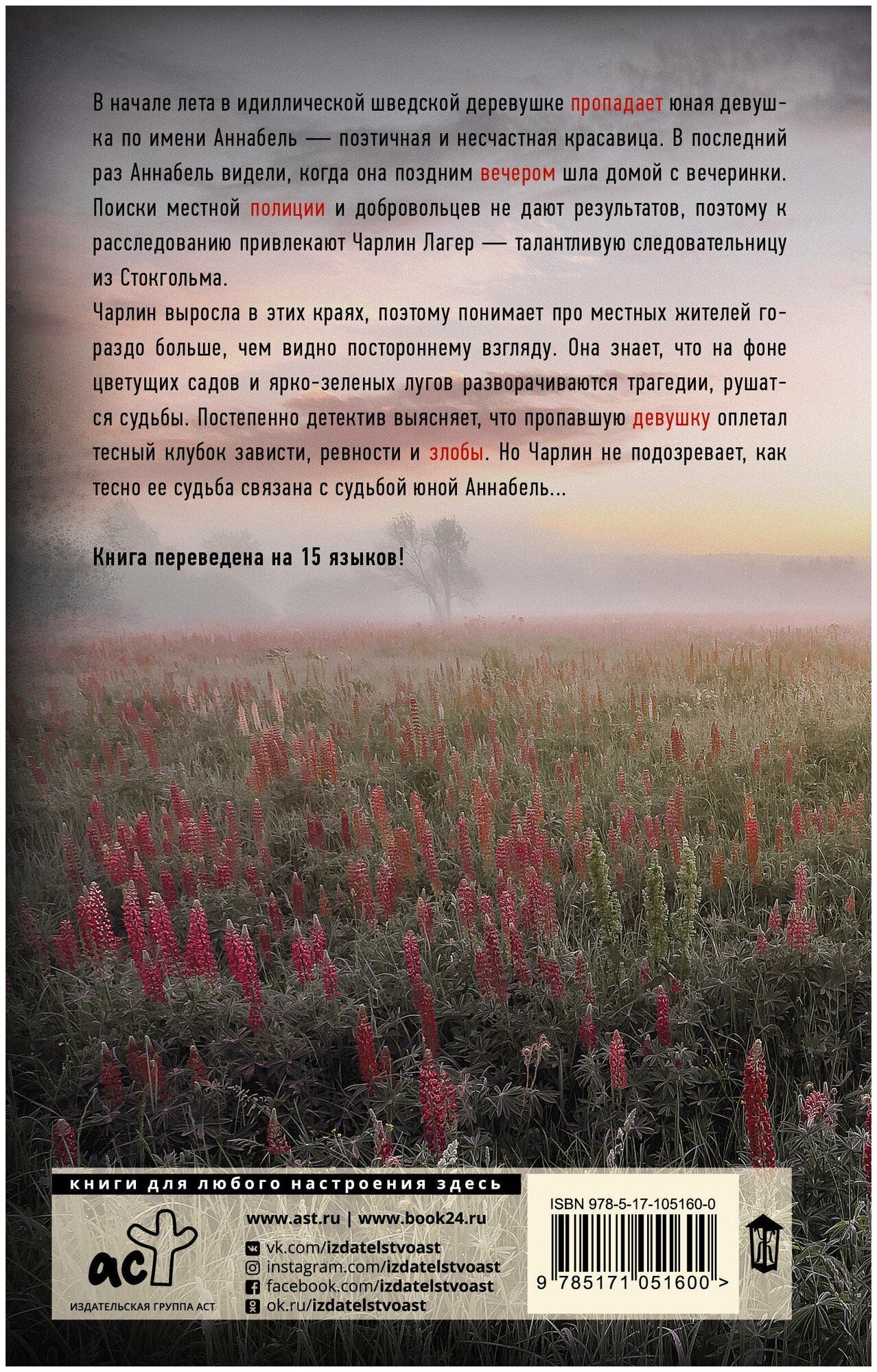 В начале лета в идиллической шведской деревушке пропадает юная девушка по имени Аннабель – поэтичная и несчастная красавица. В последний раз Аннабель видели, когда она поздним вечером шла домой с вечеринки. Поиски местной полиции и добровольцев не дают результатов, поэтому к расследованию привлекают Чарлин Лагер – талантливую следовательницу из Стокгольма. Чарлин выросла в этих краях, поэтому понимает про местных жителей гораздо больше, чем видно постороннему взгляду. Она знает, что на фоне цветущих садов и ярко-зеленых лугов разворачиваются трагедии, рушатся судьбы. Постепенно детектив выясняет, что пропавшую девушку оплетал тесный клубок зависти, ревности и злобы. Но Чарлин не подозревает, как тесно ее судьба связана с судьбой юной Аннабель…