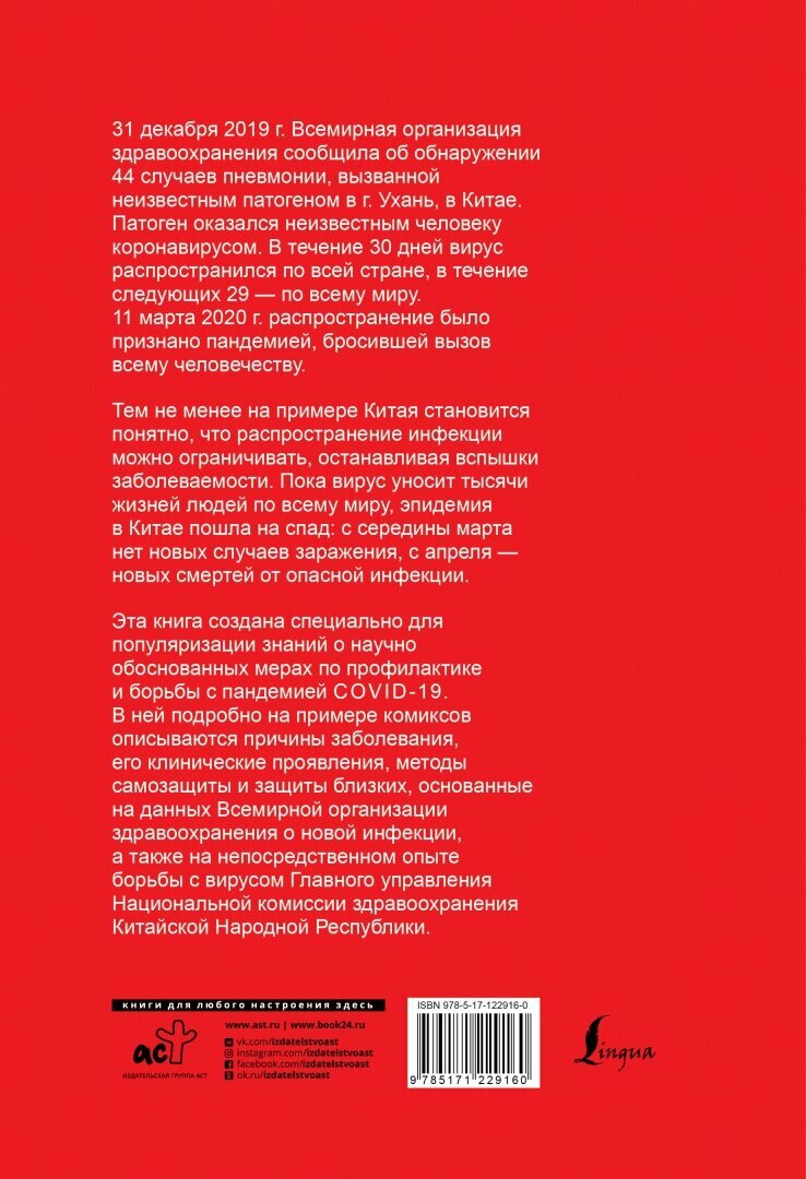 Это эксклюзивное издание собрало в себя самую актуальную информацию ВОЗ о новом коронавирусе, а также весь опыт борьбы с эпидемией Главного управления Национальной комиссии здравоохранения Китайской Народной Республики и направлено на популяризацию знаний о научно обоснованных мерах по профилактике и борьбы с пандемией COVID-19: причины заболевания, клинические проявления, методы самозащиты и защиты близких.