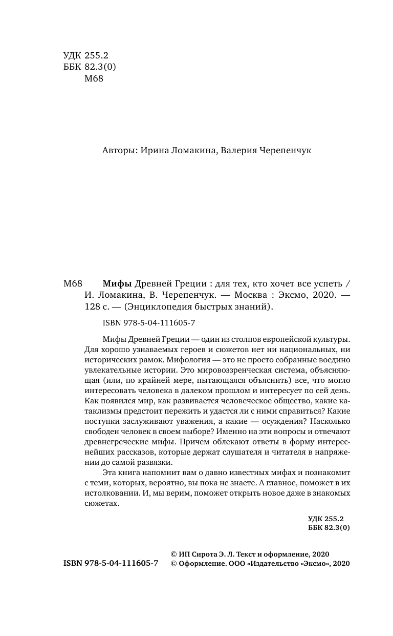 Мифы Древней Греции. Для тех кто хочет все успеть (Ломакина Ирина Викторовна, Черепенчук Валерия Сергеевна); ООО "Издательство "Эксмо", 2020
