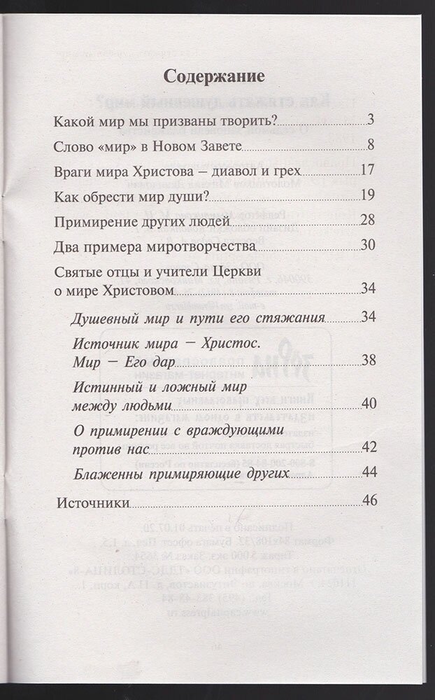 Замечательная книга составленная православным автором Михаилом Молотниковым рассказывает о седьмой заповеди блаженства, о мире. Мир с Богом, в душе и сердце, мирное отношение с другими, примирение враждующих и с теми с кем в ссоре. Автор поэтапно рассказывает православному читателю о седьмой заповеди блаженства. Об отличии мiра и мира. Напечатана крупным шрифтом, много цитат из Евангелия и святых отцов православной церкви. Прочитал книгу с огромным удовольствием!