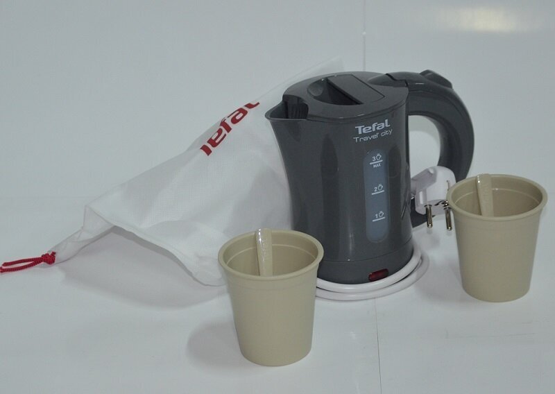Брал для командировок, не ожидал, что так буду доволен чайником для путешествий:) очень хорошее качество пластика, приятно держать в руках. Отличный мешочек для хранения и перевозки, очень удобно. Огромный плюс - два многоразовых пластиковых стаканчика с ложками в комплекте, достаточно качественные, как мне кажется. Закипает полный примерно 4 минуты, наполовину заполненный в два раза быстрее:) Для меня приоритетом было - маленький размер, чтобы не напрягал в чемодане. Оправдал ожидание на все 100% и даже больше. Единственное - коротковат шнур, но если бы он был длиннее, то его совсем некуда было бы деть, а так он очень аккуратно крепится к основанию чайника и его ручке. ТВЕРДАЯ 5+!!!!