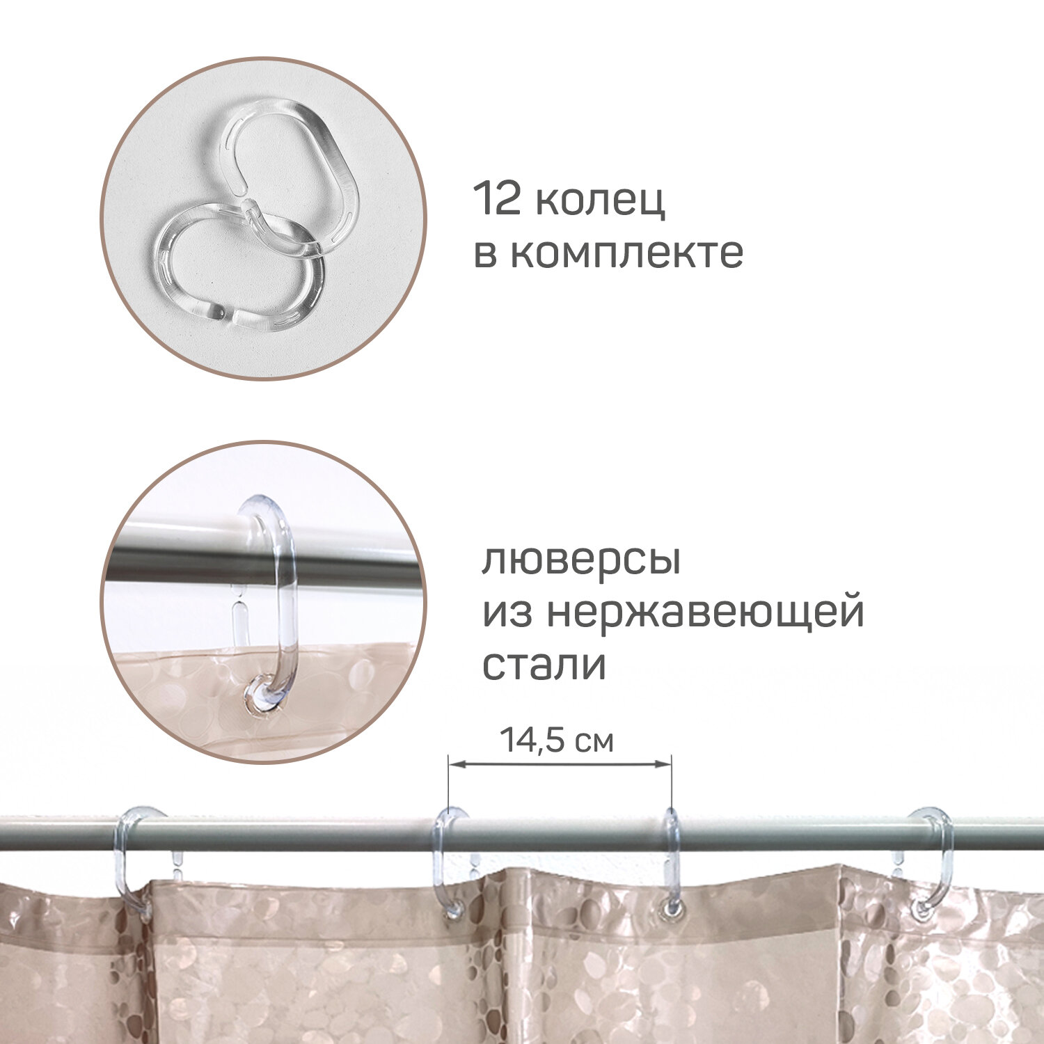| Комплектация | штора-1шт.,кольца-12шт. |