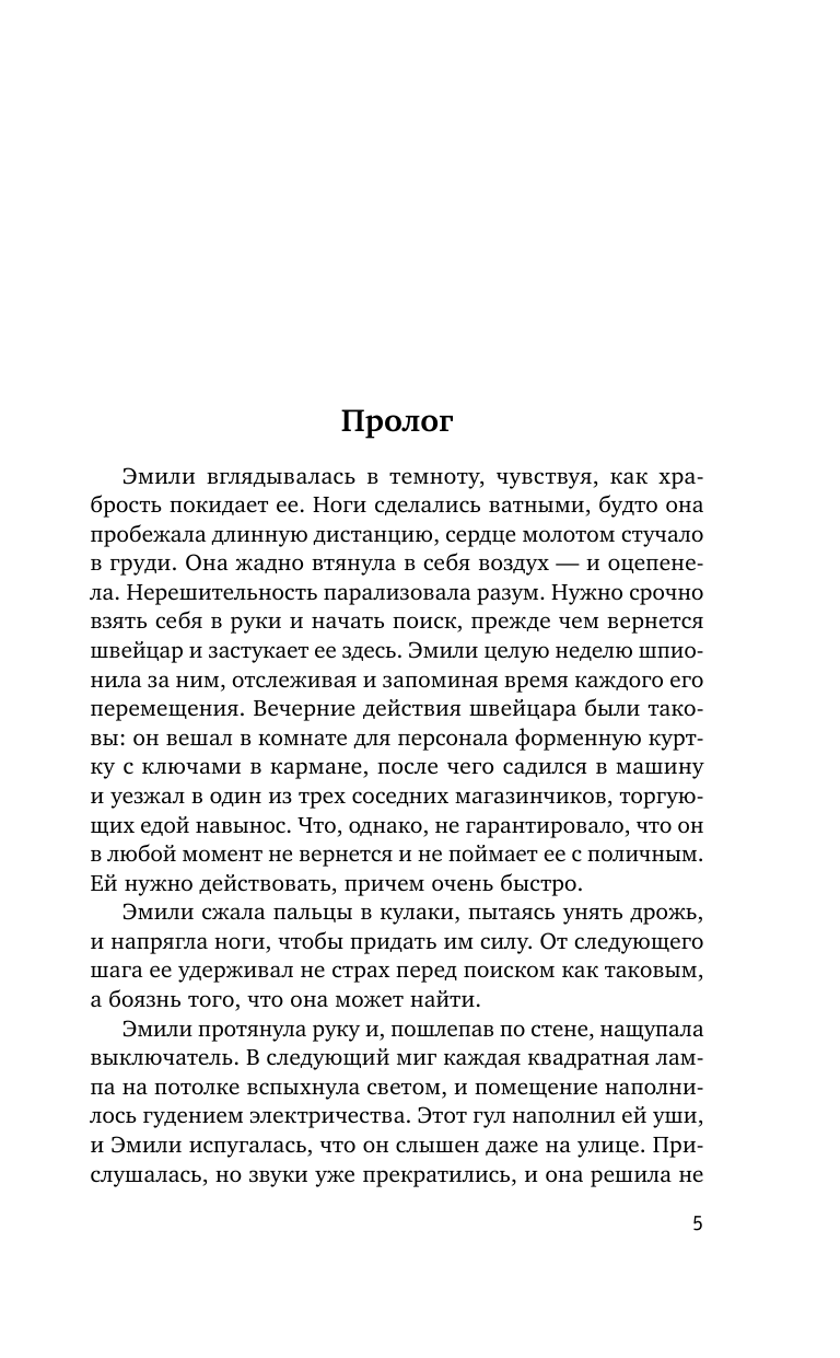 Год назад бесследно пропала Зои Джейкобс. Ее сестра Эмили не может смириться с потерей и не прекращает собственное расследование. Эмоциональное состояние Эмили сильно пошатнулось и вызывает опасения у друзей и коллег. Однажды после небольшой операции она просыпается в клинике и видит доктора, безуспешно пытающегося реанимировать женщину на соседней койке. Но утром абсолютно все говорят, что койка была пуста, а то, что она видела, - лишь кошмар из-за наркоза. Эмили верит врачам - пока не обнаруживает вещественное доказательство существования незнакомки. Женщина исчезла, и ее судьба неизвестна. Что скрывает персонал дорогой частной клиники, и может ли Эмили доверять самой себе?