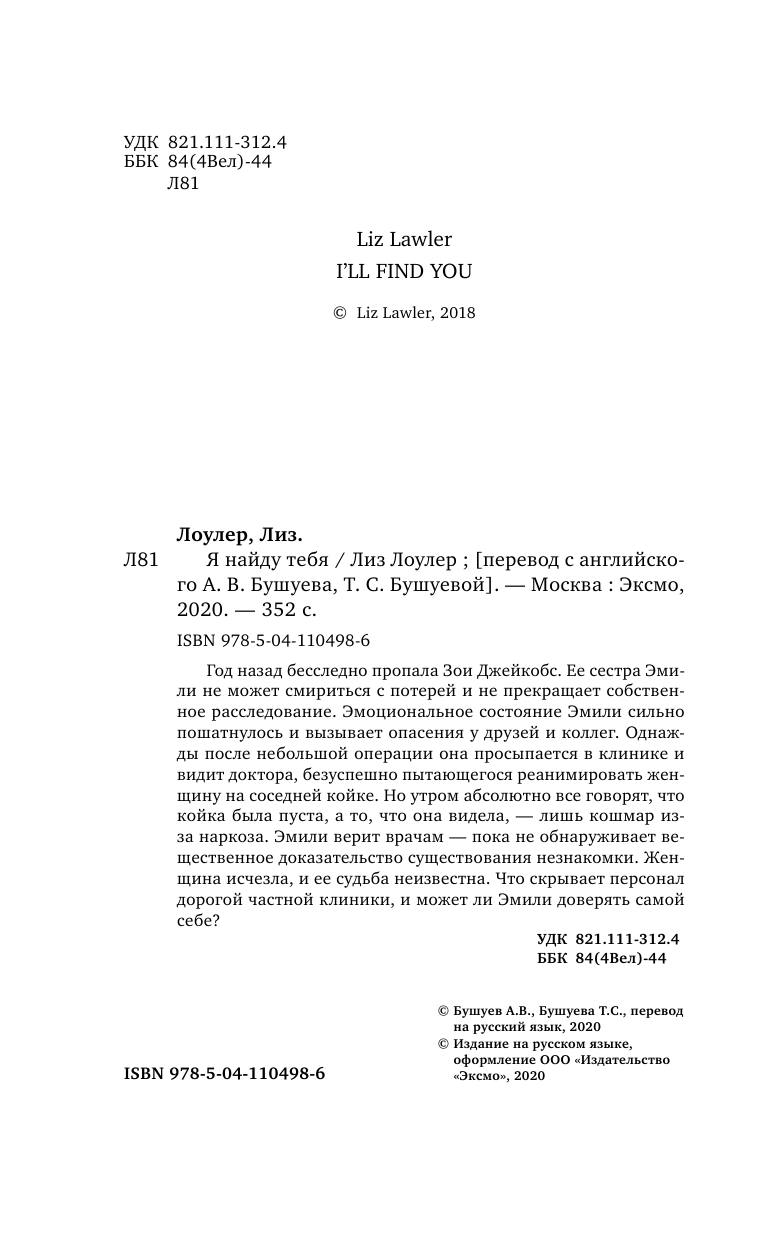 Книга: Я найду тебя (Лиз Лоулер); Эксмо, Редакция 1, 2020