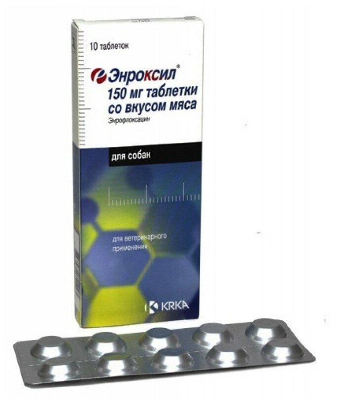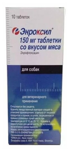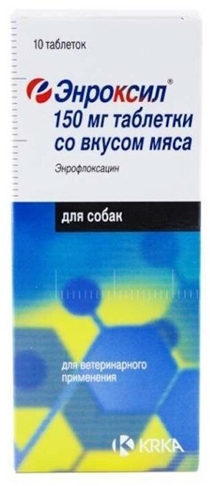Препарат KRKA Энроксил №10 со вкусом мяса упаковка 150мг 10 таб.