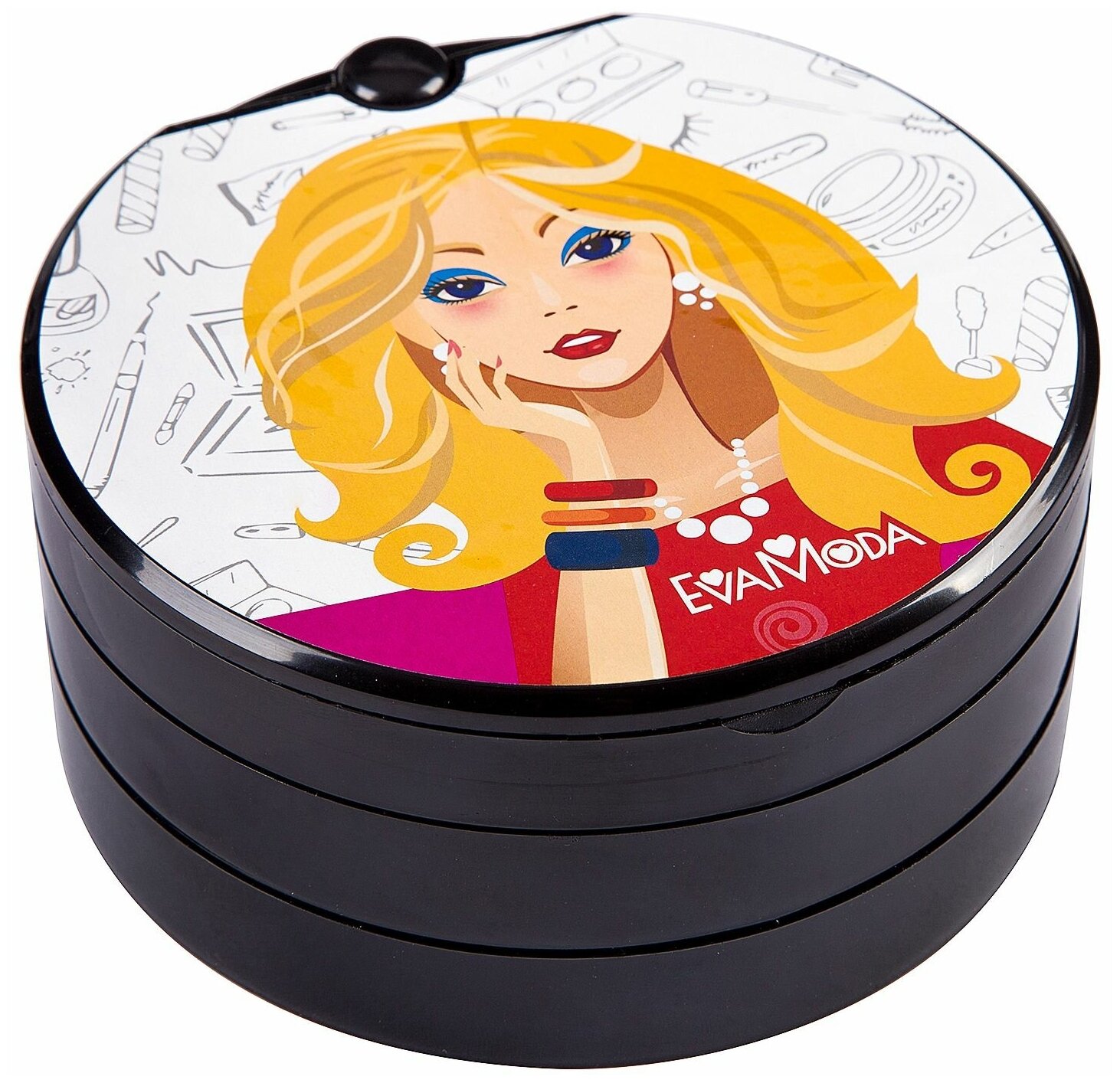 - Набор детской декоративной косметики в трёхуровневой круглой косметичке, розовый Eva Moda Bondibon