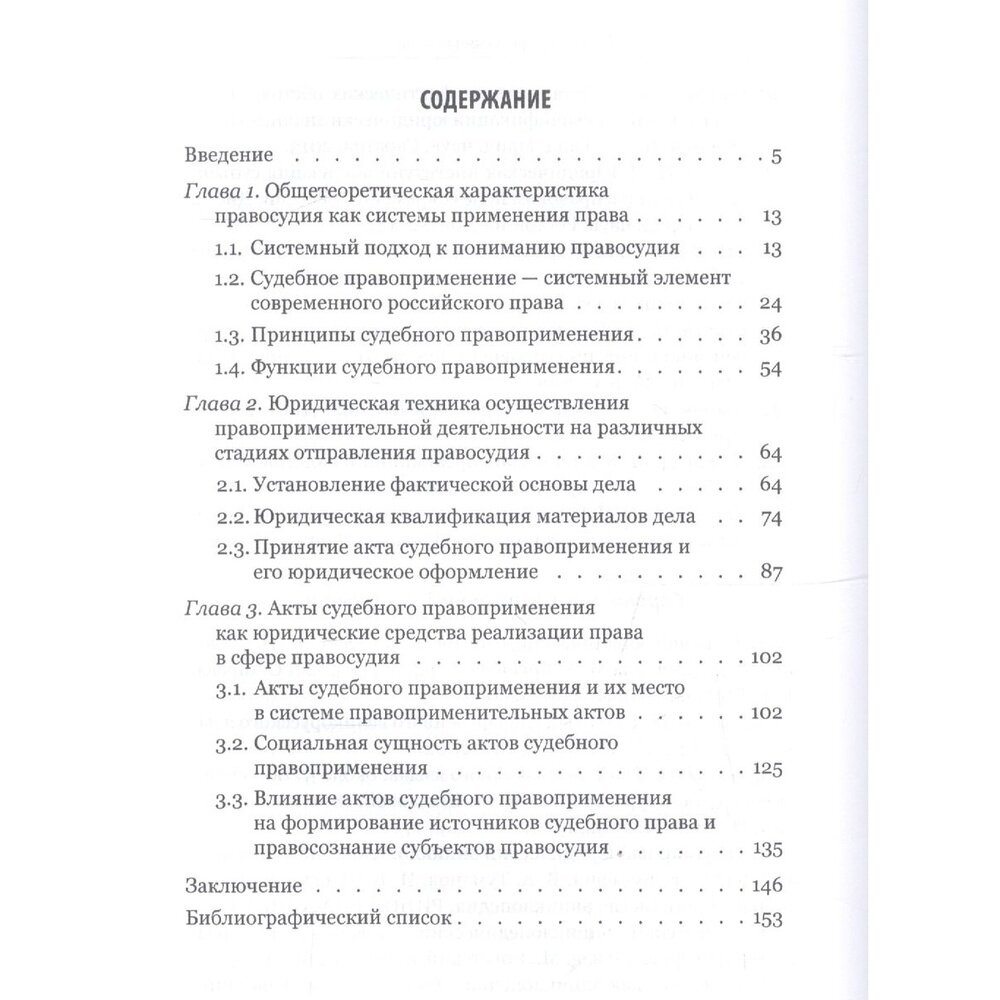 Судебное правоприменение рассматривается в книге в качестве относительно самостоятельного вида правприменительной деятельности, основной целью которой является восстановление правопорядка, нарушенного спором о праве, либо правонарушением.