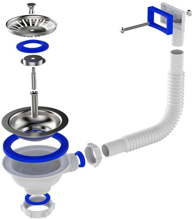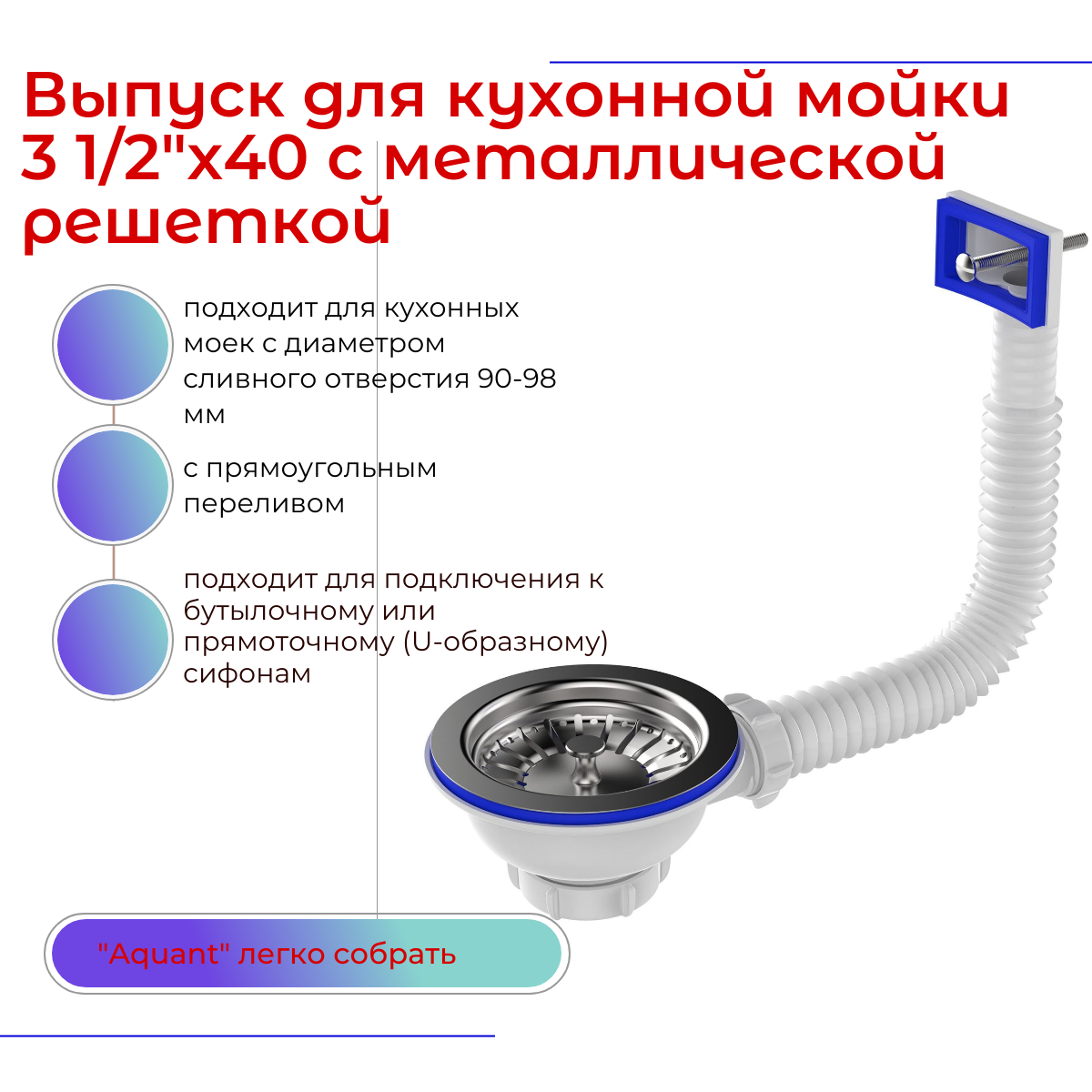 Стандартный выпуск 3 1/2 с нержавеющей решеткой и прямоугольным переливом. Подходит для большинства керамических или металлических моек. Важно посмотреть, какой тип перелива предусмотрен для Вашей мойки, круглый или прямоугольный.