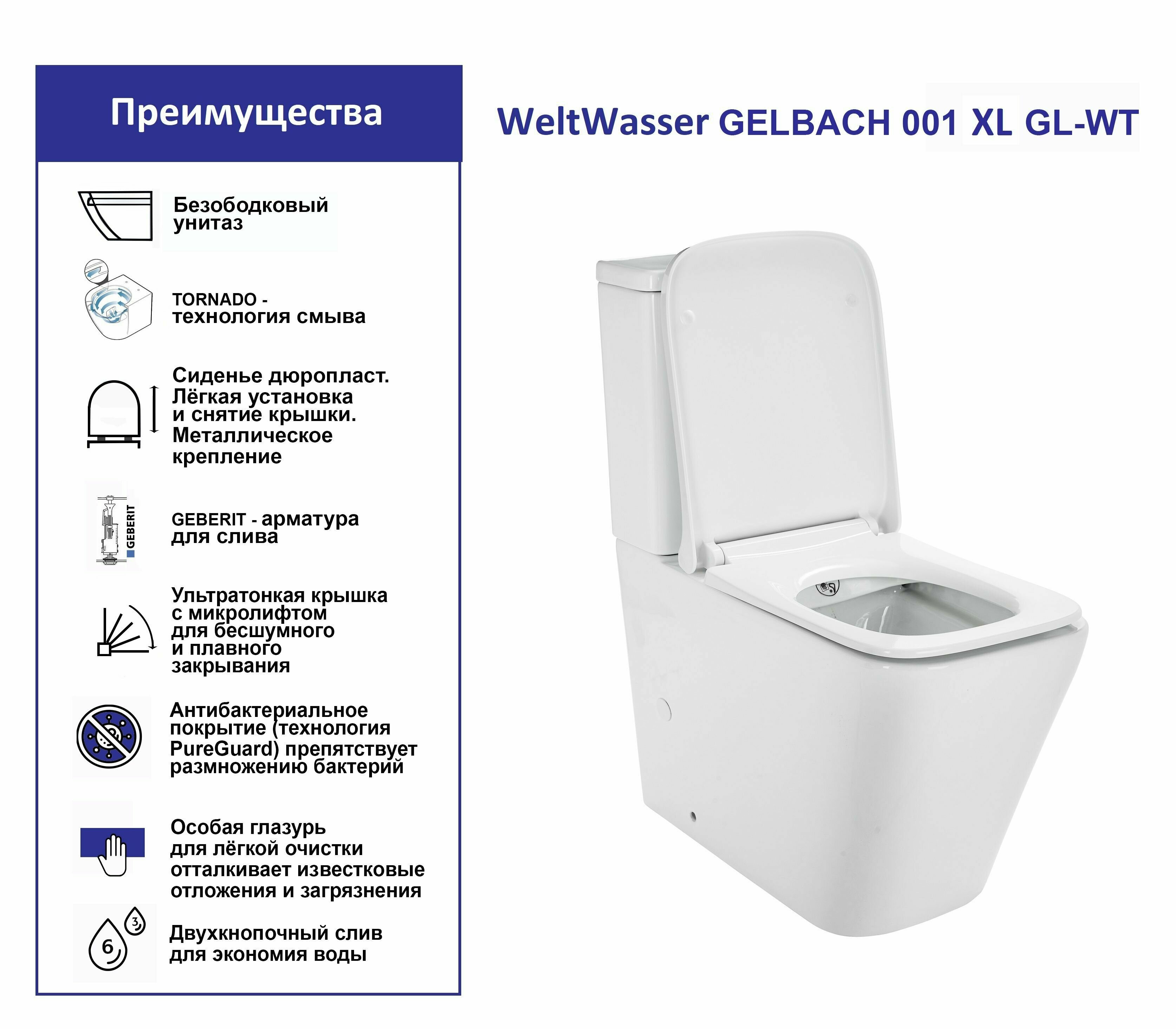 Унитаз компакт WeltWasser Gelbach 001 GL-WT 10000003734 Белый глянец с бачком и сиденьем Микролифт
