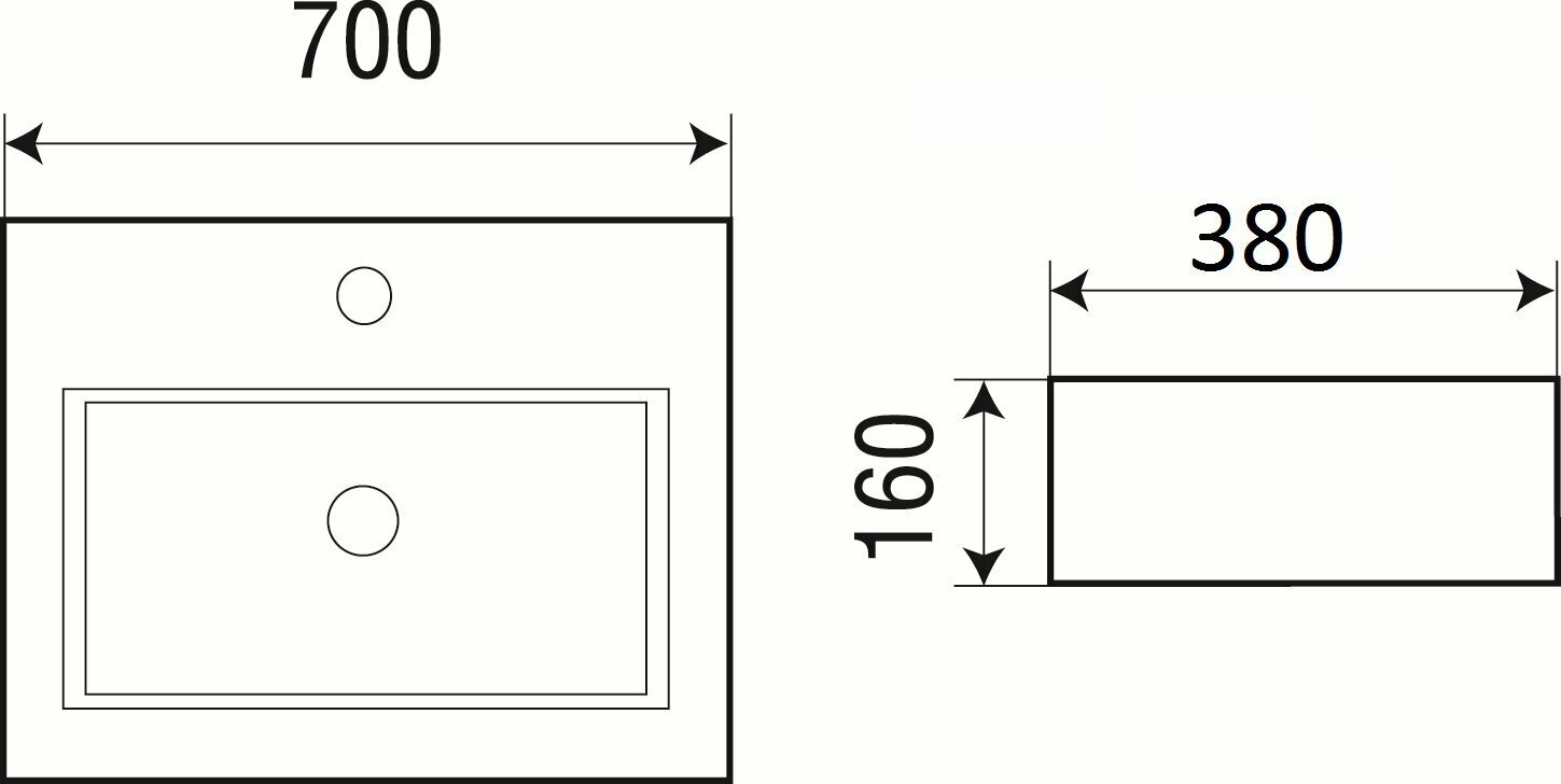 WW ELBACH 2003 Раковина накладная 700х380х160