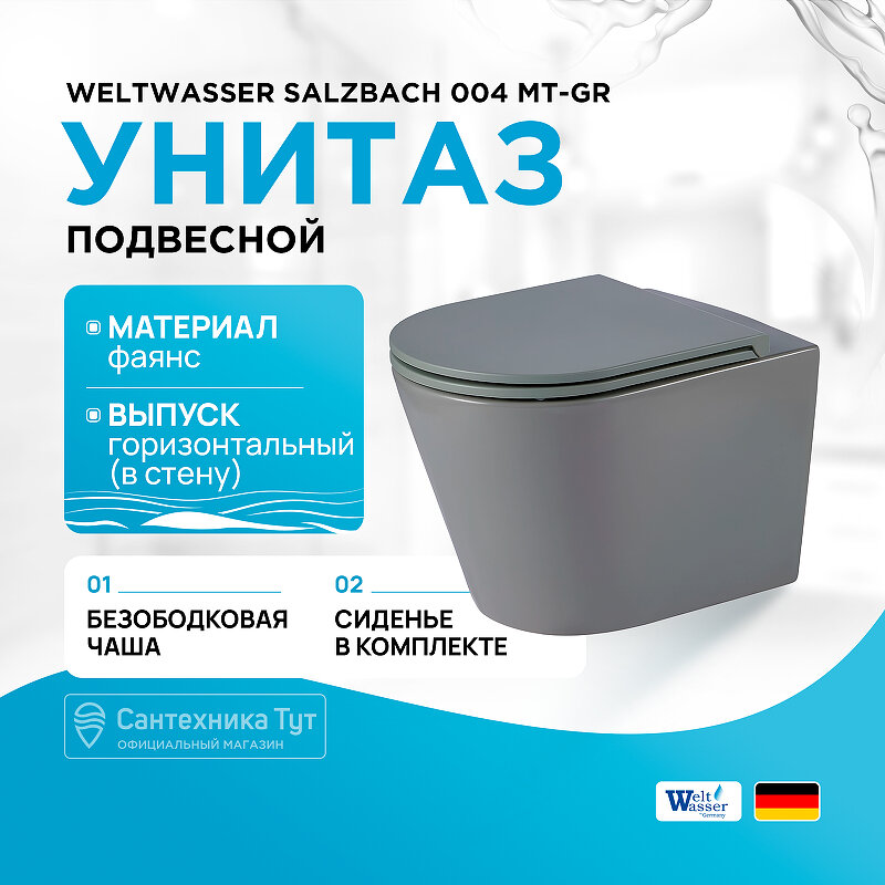 Унитаз WeltWasser Salzbach 004 MT-GR 10000003767 подвесной Серый матовый с сиденьем Микролифт