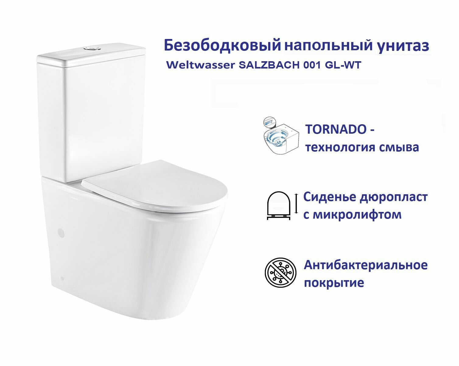 Унитаз компакт WeltWasser Salzbach 001 GL-WT 10000003763 Белый глянец с бачком и сиденьем Микролифт