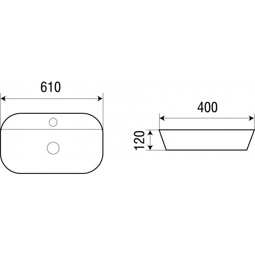 Технические характеристики: Цвет: белый глянец. Материал: высококачественный санфаянс премиум класса. Габариты (ШхДхВ): 610х400х120 см. Одно отверстие под смеситель. Монтаж: на столешницу. В комплекте поставки: раковина.