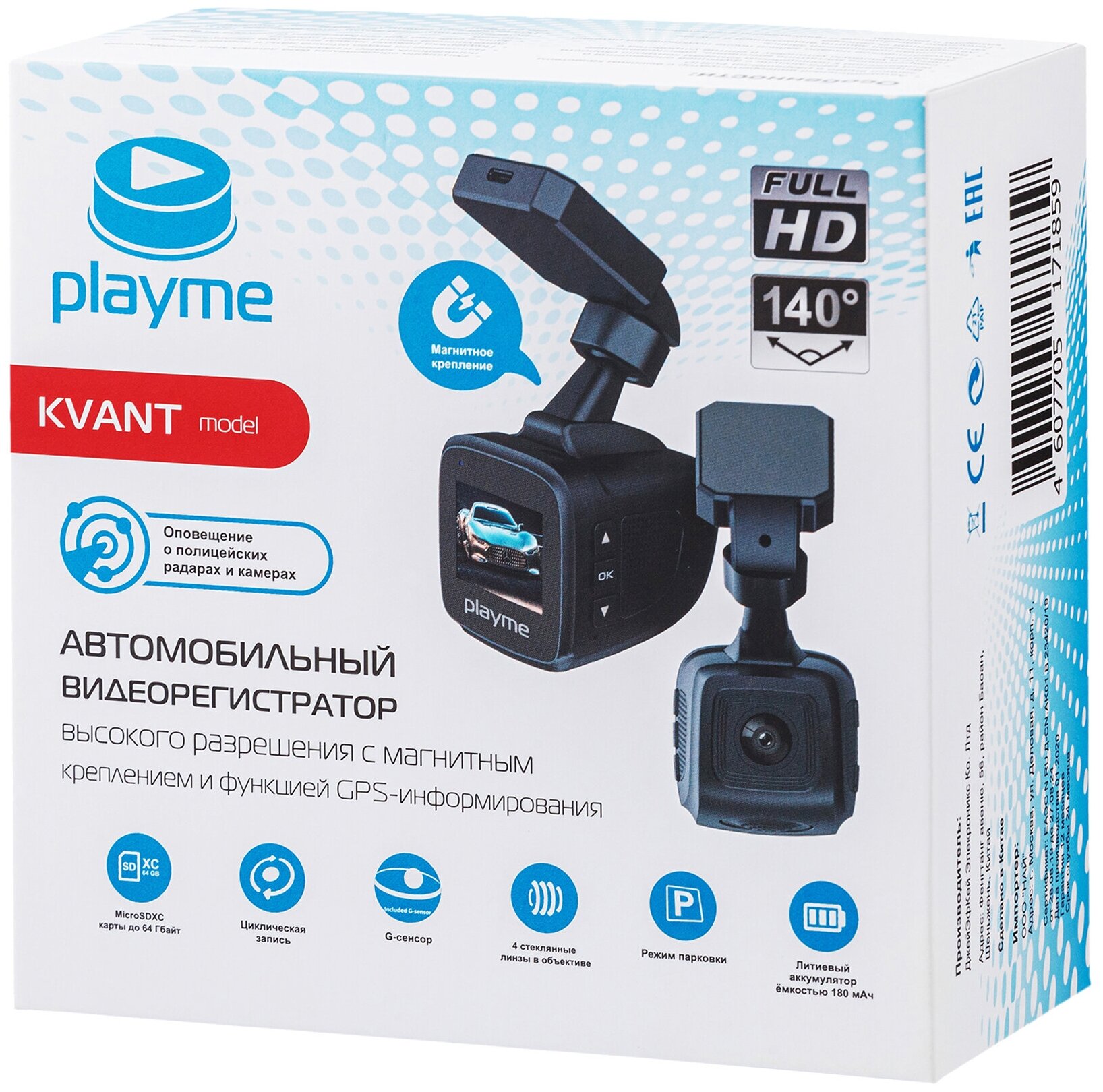 Видеорегистратор PLAYME черный KVANT