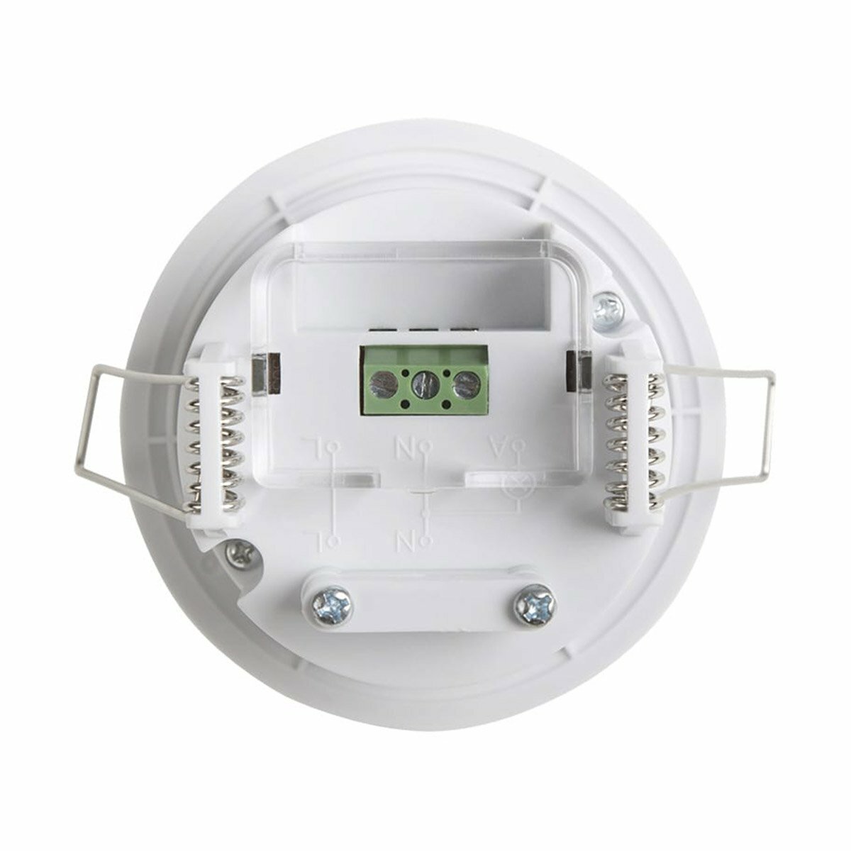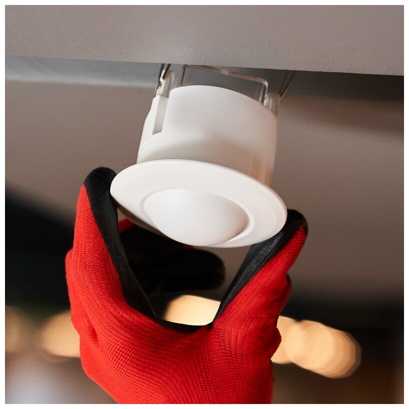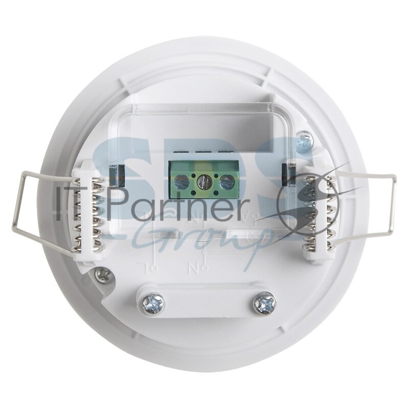 Потолочный микроволновый точечный датчик излучает электромагнитные волны с частотой 5,8 ГГц и реагирует на изменения в отражаемых волнах, вызванных перемещением объектов. Прибор встраивается в подвесной потолок с диаметром установочного отверстия 60 мм. Визуально датчик гармоничен в обстановке и не выделяется на потолке. Главное преимущество: устройство срабатывают сквозь любые препятствия: перегородки, стекла и т.п.