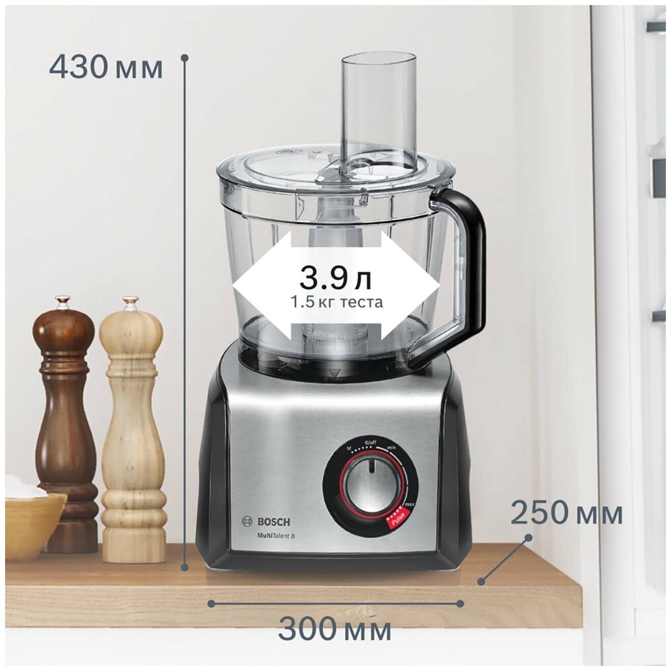 - Большая рабочая чаша, общий объем 3,9 л, возможность замешивания до 1,5 кг теста. Блендер 1,5 л из высококачественного пластика Тритан.