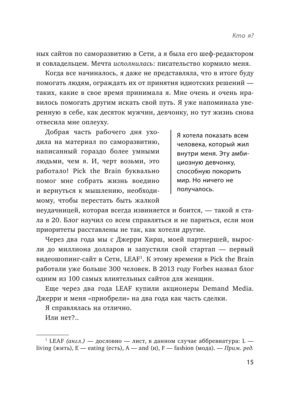 Книга мне очень помогла. Время от времени я чувствовала себя измотанной, я вроде все успевала, но не испытывала удовлетворения от того, что делала. А потом поняла, что я делала это не потому, что хотела, а потому что пребывала в какой-то бесконечной гонке. Благодаря этой книге я научилась вовремя останавливаться, получать удовольствие от жизни и быть благодарной себе за то, какая я есть.