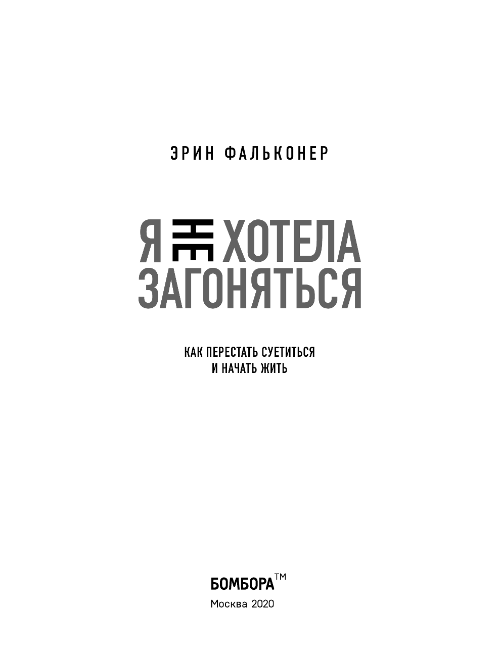 Я не хотела загоняться. Как перестать суетиться и начать жить (Фальконер Эрин); БОМБОРА, 2020