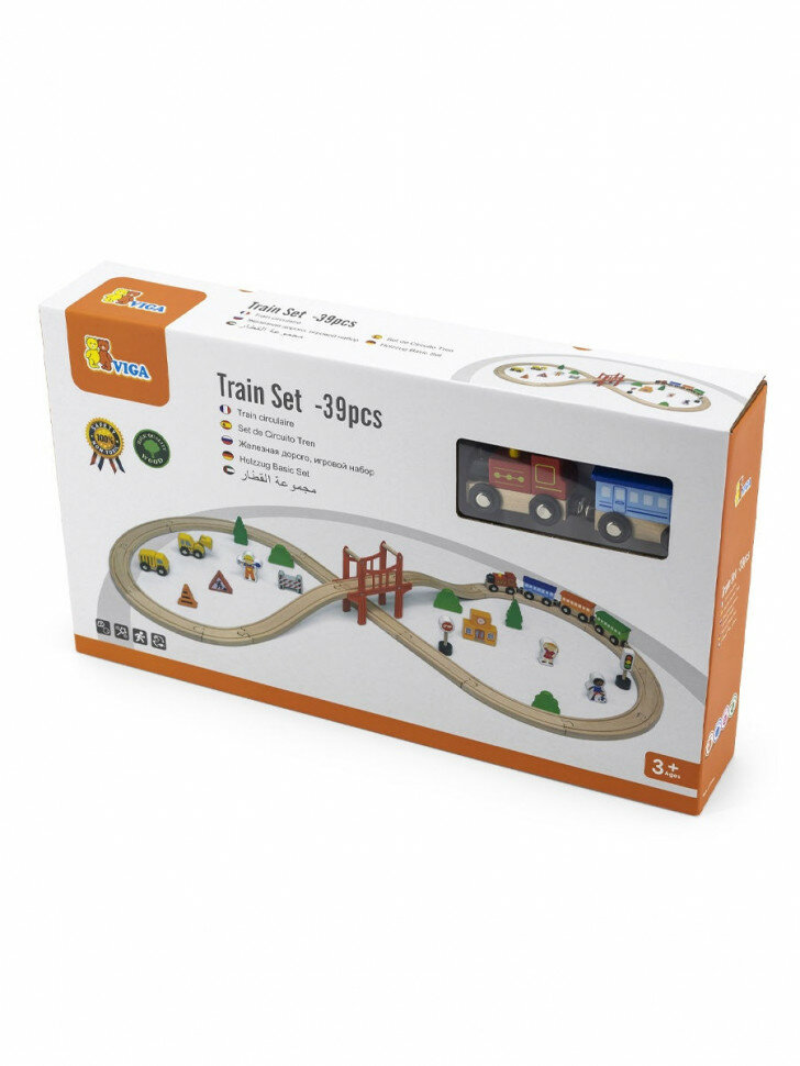 Сервис сравнения цен СкидкаГИД предлагает сравнить цены на товар «Железная дорога Viga Toys 39 деталей (50266)»